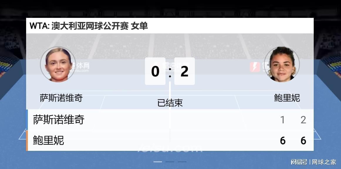 看到她从第七局状态似有较明显的提升,奋起反击将比分追至2比5后,直播间的球迷和网友还预测,估计鲍里妮想结束战斗真要费一番功夫了。无奈白俄罗斯姑娘的状态起势太晚了,最终还是让鲍里妮以6比2结束战斗,遭到了无情血洗,成为了鲍里妮澳网首秀就炮制惨案下的女主,单打之旅像烟花般一闪就结束了。